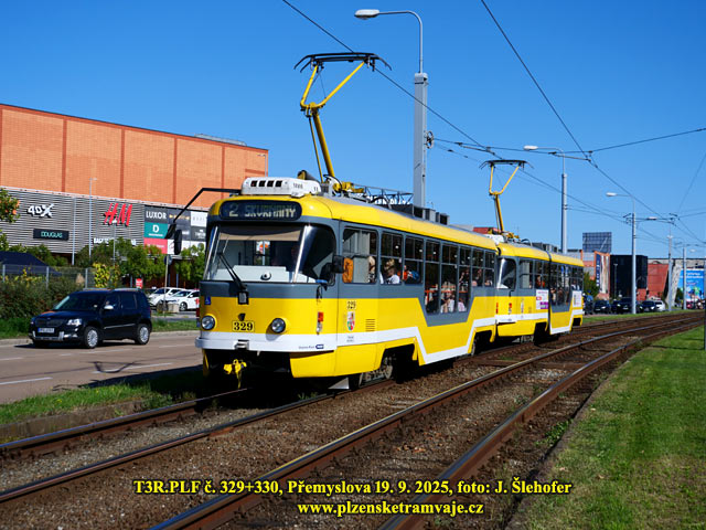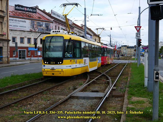 Souprava Vario LF plus č. 336+337 přijíždí do zastávky Hlavní nádraží 13. 9. 2025 Souprava T3R.PLF č. 317+318 na Mikulášském náměstí 13. 9. 2025 SU 18 č. 665 na Mikulášském náměstí 13. 9. 2025 Výluka Světovar 13. 9. 2025 Vyměněná výhybka na Světovaru 13. 9. 2025
