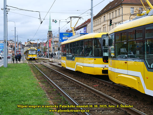 25. 11. 2025 Důvod je prostý a sice nedostatek provozuschopných dlouhých obousměrných vozů. Minulý týden a o víkendu došlo totiž k závadám na několika vozech 40T a na pokrytí výpravy (22 pořadí) tak již ani s vozy KT8 nestačily. Zatím co v prvních dnech výluky bývalo nasazeno i 19 vozů 40T a jen tři vozy KT8, v pondělí vyjelo jen 12 vozů 40T, dále osm vozů KT8 a na zbylé dvě pořadí pak již jen Inky. Podobná situace je také v úterý, kdy ráno jedou na čtyřce dvě Inky, odpoledne pak již jen jedna.