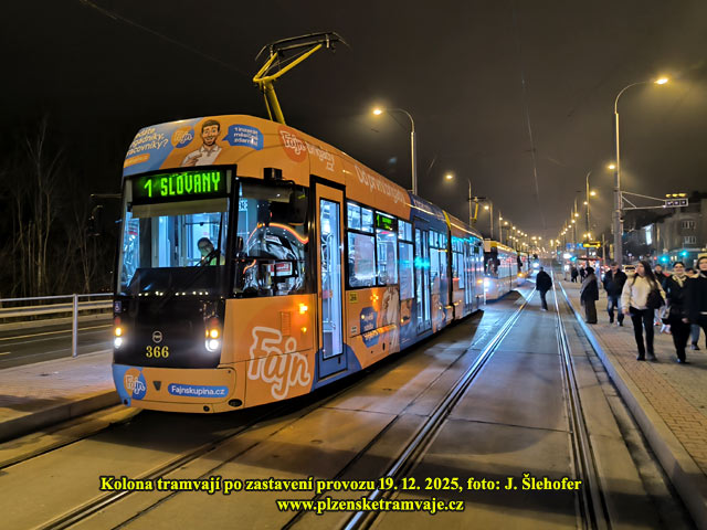 Letošní "Vánočka" vyjíždí v neděli 30. 11. 2025. Nejprve je v šestnáct hodin vystavena pro možnost fotografování v obratišti U Zvonu. Následně pak od 16:50 krouží ze zastávky U Synagogy na kolečku kolem centra. Během těchto jízd šlo také o poslední příležitost se svézt po staré trati přes Palackého náměstí, neboť v lednu rekonstrukce kolejiště od Skvrňan pokročí až k sadům Pětatřicátníků. Vánoční tramvají je letos vůz KT8D5-RN2P č. 298 a více o něm najdete na zvláštní sránce
