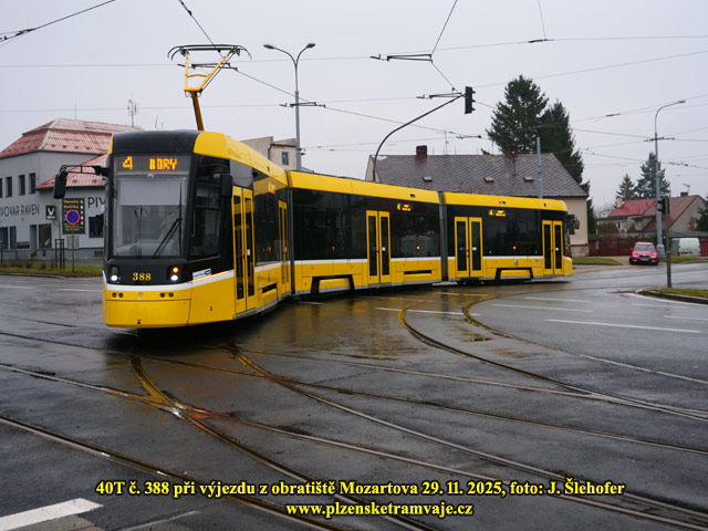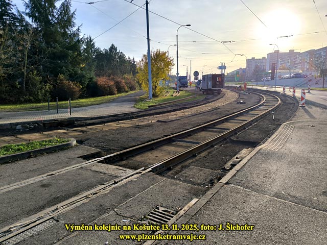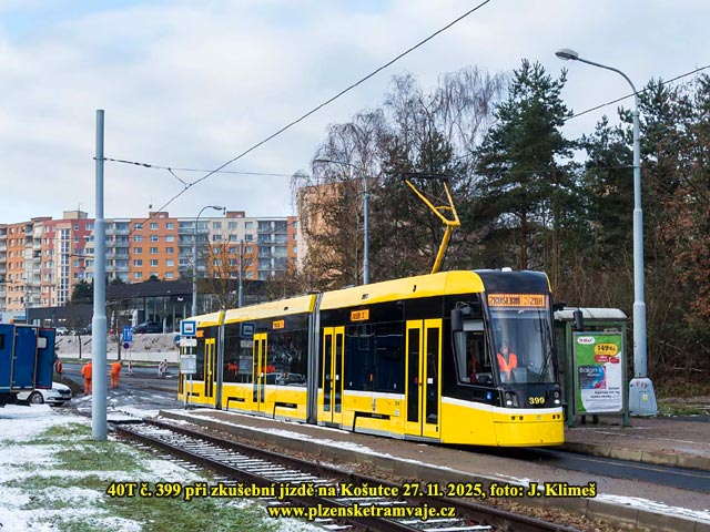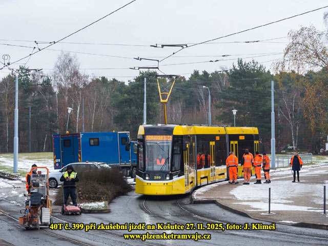 40T č. 399 při zkušební jízdě na Košutce 27. 11. 2025 40T č. 399 při zkušební jízdě na Košutce 27. 11. 2025 Blíží se konec výluky na Košutku. Nové kolejnice již byly zaasfaltovány a probíhají dokončovací práce jako např. zalévání spár. Ve čtvrtek 27. 11. 2025 kolem deváté hodiny proběhla na Košutce zkušební jízda. Vůz 40T č. 399 sem dojel přes "Kaliforňan" protisměrnou kolejí a po zkušební jízdě se vrátil přes "Kaliforňan" zase zpět.