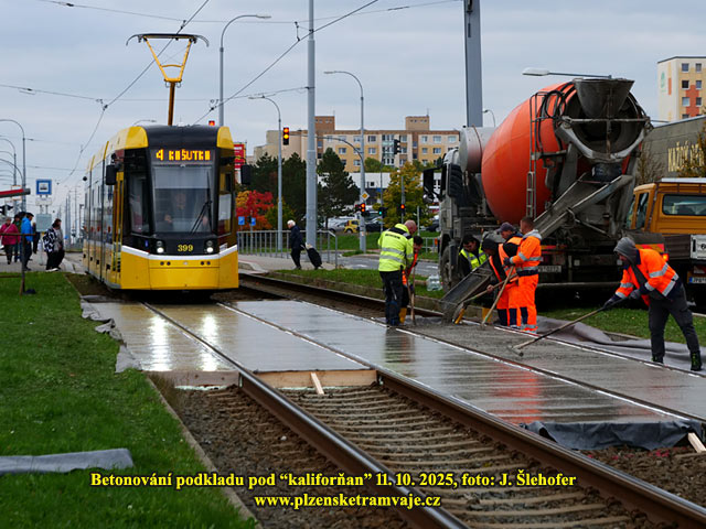 11. 10. 2025 11. 10. 2025 Začátkem listopadu byla za zastávkou Plzeňka vybetonována plocha pro montáž povrchové úvraťové výhybky, což bylo předzvěstí blížící se výluky.