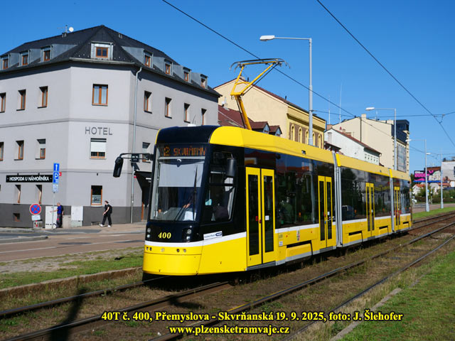 40T č. 392 po ranním příjezdu do Bolevce 30. 6. 2025 40T č. 402 linky 1/2 v zastávce Jízdecká 30. 6. 2025 V druhém od vozovny odděleném tramvajové provozu je provozována tramvajová linka označená 1/2 v trase Bolevec - Skvrňany. Ve své normální trase je pak v provozu linka č. 4, tedy z Košutky na Bory, či některé spoje až na konečnou Univerzita.