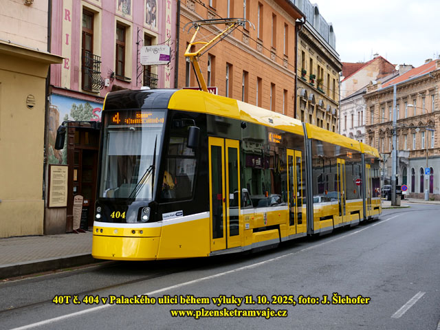 40T č. 394 v zastávce Jízdecká 11. 10. 2025 40T č. 404 v Palackého ulici 11. 10. 2025 Výluka tramvají začala již v pátek od osmnácti hodin, kdy spoje linky č. 4 od Košutky byly ukončeny již v sadech Pětatřicátníků a cestující směřující na Bory museli využít autobusy náhradní dopravy linky 4A. Samotný přesun tanku z tahače do dvora pak probíhla v sobotu od 11:30 hod.