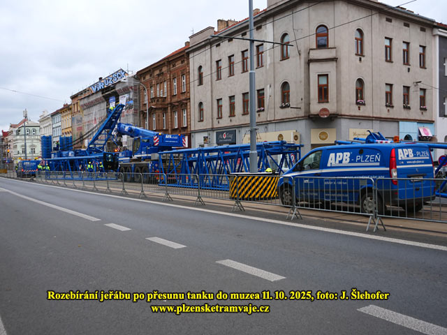 Výlukové přestupní schéma z webu PMDP Rozebírání jeřábu po stěhování tanku Následně byl jeřáb během sobotního odpoledne opět rozebrán. Demontáž převěsů trolejového vedení nebyla ani tak nutná pro samotný přesun tanku, jako hlavně pro stavbu a rozebírání jeřábu. Na obnovu trolejového vedení do původního stavu je pak nedělní dopoledne. Provoz tramvají na Bory se vrací v neděli 12. 10. 2025 cca ve 14:00.