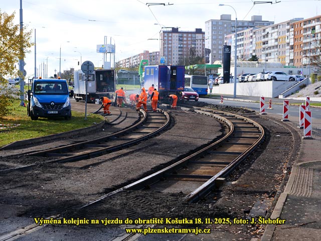 3. 11. 2025 3. 11. 2025 Samotná výluce předcházela ještě instalace povrchové úvraťové výhybky. V neděli 2. 11. 2025 byla od 22:00 linka č. 4 odkloněna do obratiště Mozartova a na Košutku vyjely od Lékařské fakulty autobusy náhradní dopravy. Od pondělí 3. 11. 2025 je pak linka č. 4 ukončena v zastávce Plzeňka. Na linku jsou tak vypravené výhradně obousměrné tramvaje. V první den jde o 18 vozů 40T a 4 vozy KT8D5-RN2P.