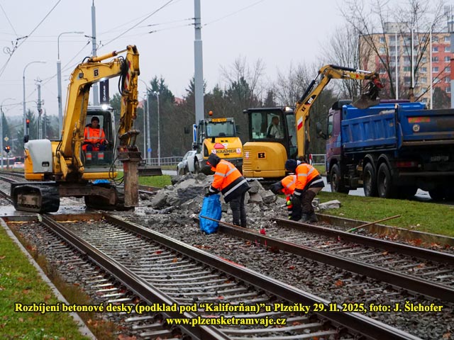 V sobotu 29. 11. 2025 probíhá výluka tramvají na Košutku. Již během noci byl u Plzeňky demontován "Kaliforňan" a následně je rozbíjena také podkladová betonová deska. Tramvajová linka č. 4 je od Bor je vedena do obratiště Mozartova. Cestující na Košutku pak mohou využít náhradní autobusové linky 4A od Lékařské fakulty. Od neděle 30. 11. 2025 je pak obnoven tramvajový provoz až na Košutku.