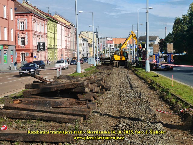 10. 10. 2025 10. 10. 2025 Před plánovanou rekonstrukcí tramvajové trati na Skvrňanské a Přemysově třídě bylo potřeba udělat pár fotografií stavu v posledních dnech provozu. Jde o první tramvajovou trať v Plzni, kde byly použité dřevěné pražce a otevřený kolejový svršek (vybudována v letech 1988-89). Druhou takovou byla ta v Bolevci, která však je již po rekonstrukci a vypadá jinak. Také sem se již tato podoba trati nevrátí. V úseku od sadů Pětatřicátníků k Plaze byl měla trať být zakryta, aby byla sjízdná i vozidly IZS (u sadů Pětatřicátníků bývají kolony, tak aby bylo možné je objet) a další úsek trati byl měl být ozeleněn. Bohužel zde však nemají být použité bezžlábkové kolejnice, což je škoda. Jízda po nich je výrazně klidnější a tišší (zkušenost Košutka - versus Bolevec a to i před ozeleněním).
