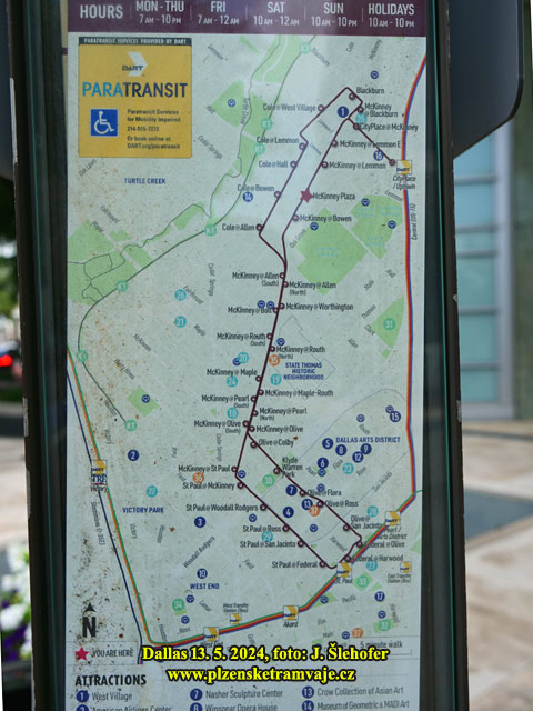 Historickou tramvajovou linku provozuje McKinney Avenue Transit Authority (MATA) - nezisková organizace dotovaná Dallas Area Rapid Transit (DART), tedy společností provozující moderní provozy popsané výše, ale také místní autobusové linky. Jízdné na historické tramvajové lince je dobrovolné.
