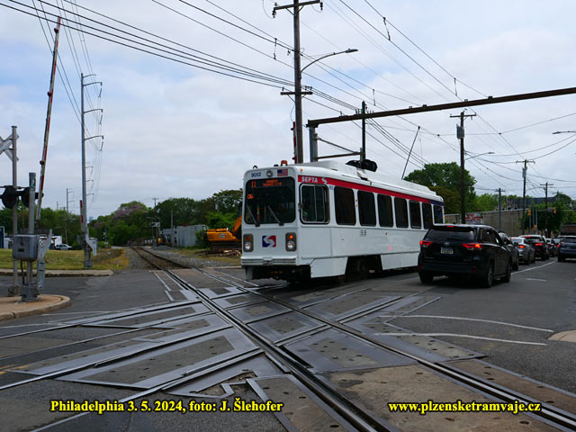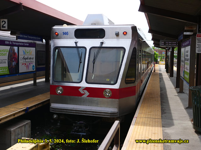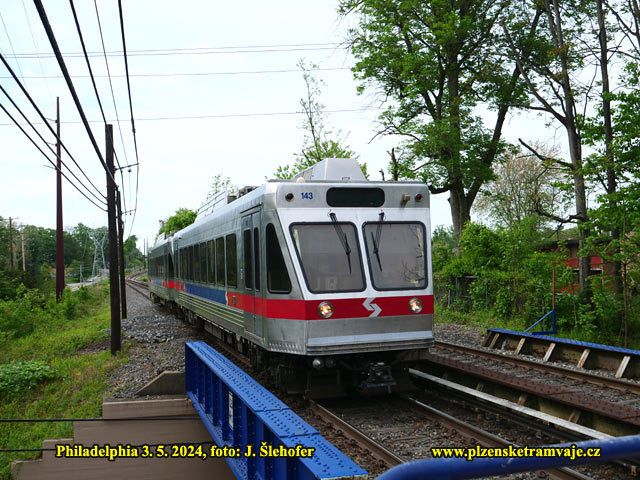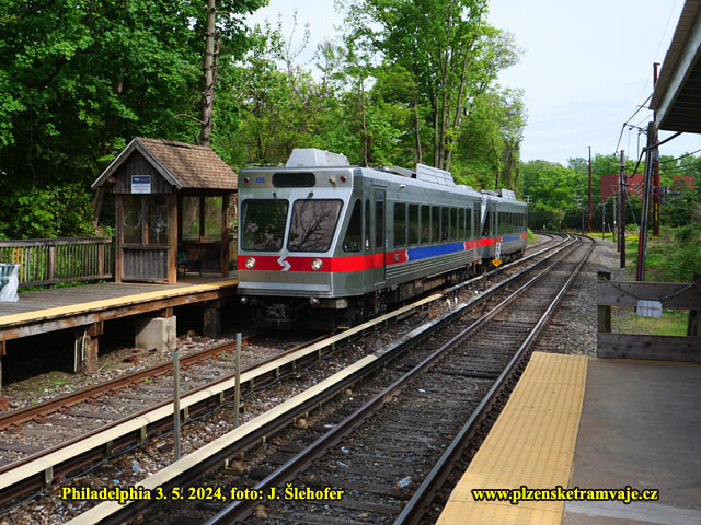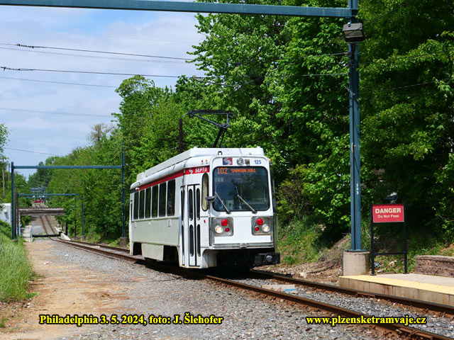 Další zvláštní linkou je tzv. Norristown High Speed Line, někde označovaná také číslem 100. Spíše než o tramvaj, jde o příměstskou železnici. Provozovaná vozidla pak připomínají vozy metra. V době naší návštěvy byly v provozu nasazeny dvouvozové soupravy, ale údajně občas jezdí i jen sólo vozy. K napájení je používána třetí boční kolejnice, tedy podobně jako u metra.