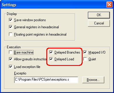 Především se jedná o povolení nebo zákaz simulace zpoždění instrukcí typu load a skokových instrukcí. Porovnání průběhu výpočtu s povolenou a zakázanou simulací těchto zpoždění je velmi užitečné pro pochopení činnosti procesorů s architekturou RISC.